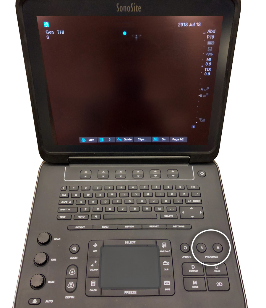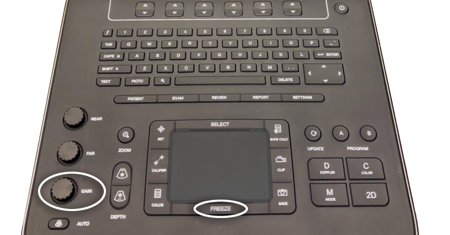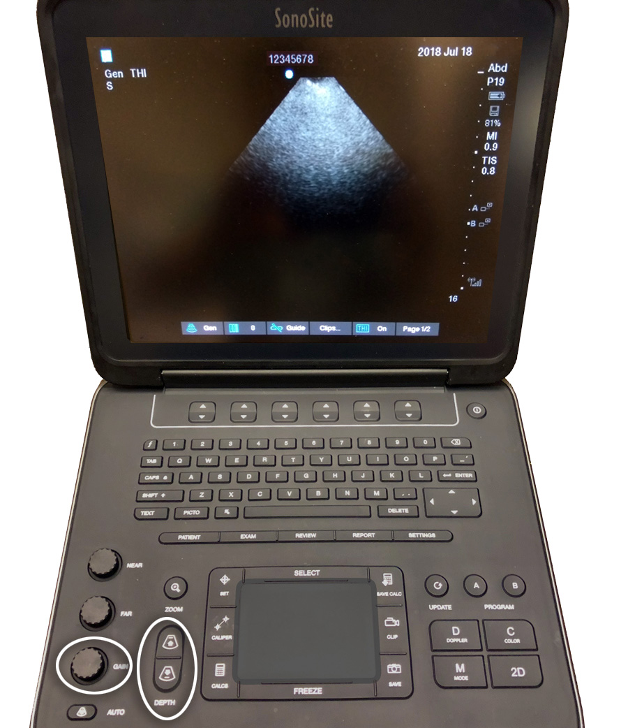 5 Optimize gain and depth as needed (can also selectively adjust nearfield gain and farfield gain). Note: do not rely on “auto” gain though it may be useful as a reset to default.